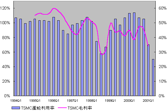 ¥x¿n¹q2000¦~À禬1662.28»õ¤¸¡A°ê¤º¥X³f¤ù¼Æ¹F294.3¸U¤ù¡AÀç·~¤ò§Q739.25»õ¤¸¡A¤ò§Q²v¬ù44.47%¡Aµ|«e²b§Q638.38»õ¤¸¡A¥H¥h¦~¦X¨Ö¼wùÖ»P¥@¤j¨â´¹¶ê¼t«á¤§1168.94»õ¤¸ªºªÑ¥»pºâ¡AEPS¹F5.57¤¸¡A³Ðªñ¤T¦~¨Óªº·s°ª¡C¦Ó¤µ¦~2001¦~¡A¦b¥b¾ÉÅé´º®ð«æ³t¤ÏÂ઺±¡ªp¤U¡A¥x¿n¹q²Ä¤@©uªº²£¯à§Q¥Î²v70%¡A²Ä¤G©u¹w¦ô¬°50%¡A¦]¦¹¤W¥b¦~¤§À禬¹w¦ô¶È660»õ¤¸¡A§ëÅU¹w¦ô¥x¿n¹qªºÀ禬±N¦b²Ä¤G©u©³»P²Ä¤T©uªìIJ©³¡A¦]¦¹²Ä¤T¡B¥|©uªº²£¯à§Q¥Î²v±N°ª©ó50%¡A¹F¨ì52%»P60%¤§¤ô·Ç¡A¦]¦¹¹w¦ô¥þ¦~À禬¬°1376»õ¤¸¡AÀç·~¤ò§Q309.8»õ¤¸¡A¥§¡¤ò§Q²v¬ù22.5%¡A§C©ó¥h¦~44.47%ªº¤ô·Ç¡C¥t¥~¸Ó¤½¥q²Ä¤@©uÂà§ë¸ê·l¥¢15.2»õ¤¸¡A¨ä¤¤«ùªÑ100%ªº¬ü°êWafer