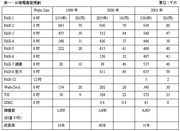 ¥x¿n¹q¦b1998¦~¡B1999¦~»P2000¦~¤W¥b¦~ªº¥Dn»sµ{§¡¬°0.35·L¦Ì¡A¦Ó0.25·L¦Ì»sµ{¦b¥h¦~¤j´T¼W¥[¸ê¥»¤ä¥X¥H´£¤É»sµ{¤ô·Çªº±¡ªp¤U¡A¦b2000¦~²Ä¤T©uªº¤ñ«¤w±µªñ30%¡A¤µ¦~2001¦~²Ä¤@©u0.25·L¦Ì»sµ{ªº¤ñ«¤w¶W¶V0.35·L¦Ì¡A¤À§O¬°34%»P30%¡A¦Ü©ó§ó°ª»sµ{ªº0.18·L¦Ì»P0.15·L¦Ì¡A«h¦b¤µ¦~²Ä¤@©u±µªñ20%¡A§ëÅU¹w¦ô¦b12¦T¼tªº§ë¤ù¼Æ³vº¥¼W¥[ªº±¡ªp¤U¡A¤µ¦~²Ä¤G©uªº¦³Ãö0.18·L¦Ì»P0.15·L¦Ìªº¤ñ«±N·|¶W¹L20%¡C