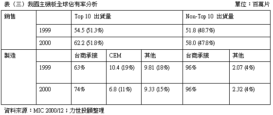 Y¦A¥Ñ²£¶q¥H¤Î²£È¨Ó¬Ý¡A¥xÆW¥D¾÷ªO¼t°Ó¥X³f¶q¡]¤£§t¨t²Î¼t¡^¡A±q1999¦~¬ù6400¸U¤ù¦¨ªø¨ì2000¦~¬ù8400¸U¤ù¡A¦¨ªø²v¹F¨ì31.06¢M¡A¦ý¬O²£È«h¬O¥Ñ4854¦Ê¸U¬ü¤¸¦¨ªø¨ì2000¦~5674¦Ê¸U¬ü¤¸¡A¦¨ªø²v¶È16.89¢M¡A¥Ñ¦¹¥iª¾§C»ù¤Æ¹q¸£ªºÁͶդw¸g©úÅã½ÄÀ»§Ú°ê¥D¾÷ªO¼t°Óªºµo®i¡C