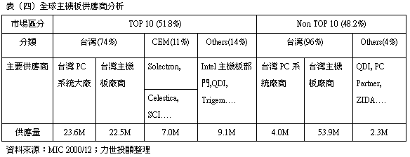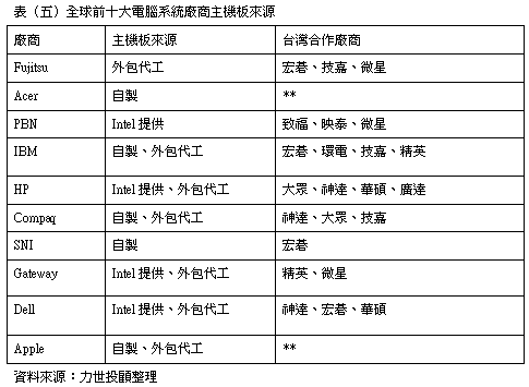 Services¡FEMS¡^¥N¤u»P¤j¼t¦Û»s¤ÎIntel¨ÑÀ³©Ò¥Ê¤À¡]¨£ªí¥|¡^¡A¦p¤µ§C»ù¹q¸£¦¨¬°¥D¬yªºÁͶաA°ê»Úª¾¦W«~µP¤j¼t¦]¬°»s³y¦¨¥»¤£¨ãÀu¶Õ¡A¥[¤WP¤Oµo®i«~µP¦æ¾Pªºµ¦²¤¤§¤U¡A¥[³tÃö³¬®ü¥~¥Í²£°ò¦a§ï¥H©e¥~¥N¤u¬°¥D¡AIntel¦~ªìÃö³¬ªi¦h¾¤¦Uµ¥®ü¥~¥Í²£°ò¦a¡A³y¦¨¨ä©¾¹ê«È¤áDell¨Ó¥x¤U³æ«K¬O¤@¨Ò¡F¦Ó¥xÆW±µ³æ»P¬ãµo¯à¤O¥þ±´£¤É«á¡A¦b¸Ó¥«³õªº¥«¦û²v¤]³v¦~¼W¥[¡C¥Ñ©ó¸Ó¥«³õ¦¨ªøªÅ¶¡¬Û¹ï©óClone¥«³õ¼eÁï¡A¬G¹ï©óª§¨ú¥þ²y«e¤Q¤j¹q¸£¼t°ÓªºOEM/ODMq³æ¡A°ê¤º¦U®a¼t°ÓµL¤£¥f¨¬¥þ¤OÂX²£ª§¨ú¡A¥H¨D·~ÁZ¯à«ùÄòéw¦¨ªø¡AµM¦Ó¡A¦p¦¹¤@¨Ó±N±Á{°ê»ÚEMS¼t°Óªº±j¤OÄvª§¡C